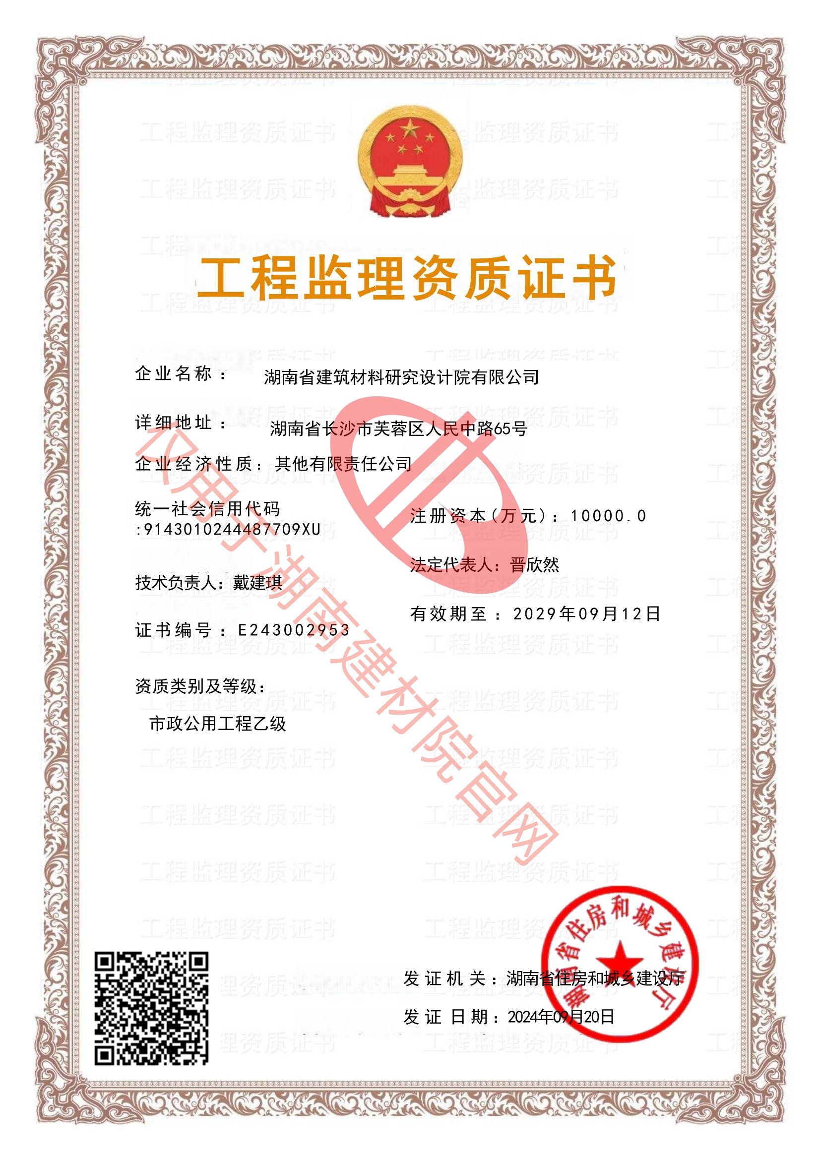 湖南省建筑材料研究設(shè)計(jì)院有限公司的前身為湖南省建筑材料研究設(shè)計(jì)院,成立于1958年,是1993年全國(guó)首批榮獲國(guó)家建材行業(yè)設(shè)計(jì)、工程總承包甲級(jí)資質(zhì)的四個(gè)科研設(shè)計(jì)單位之一。